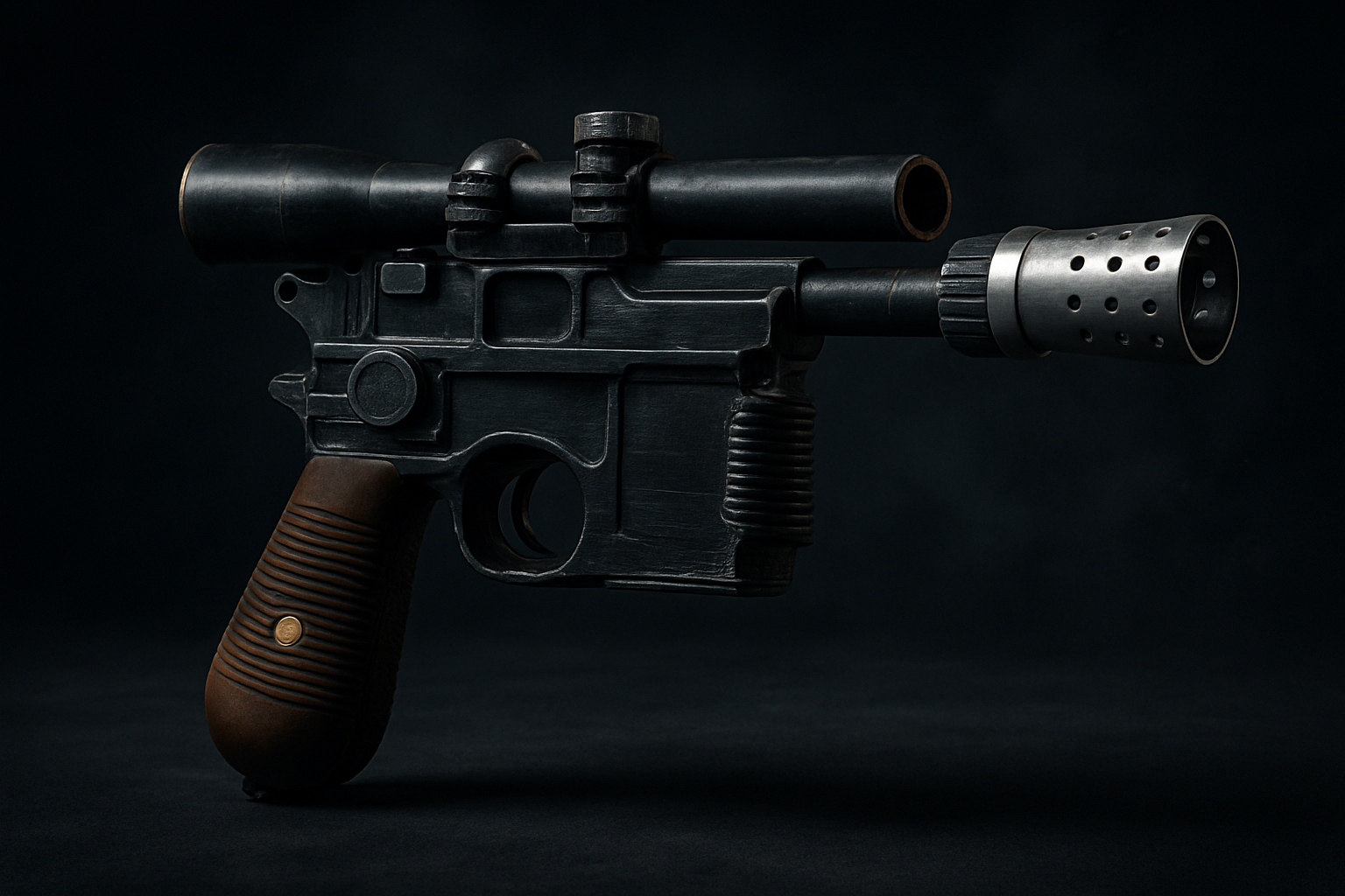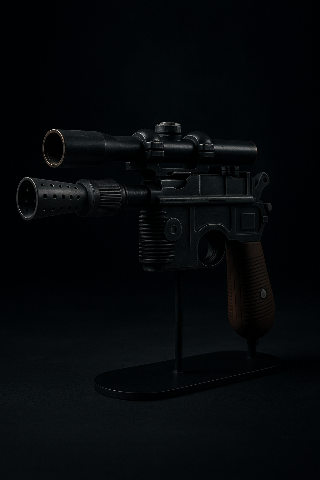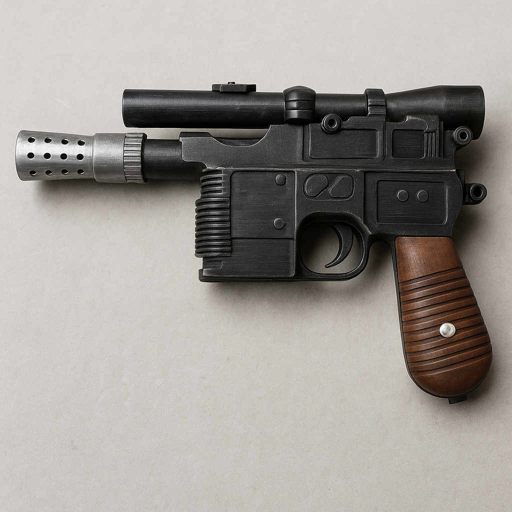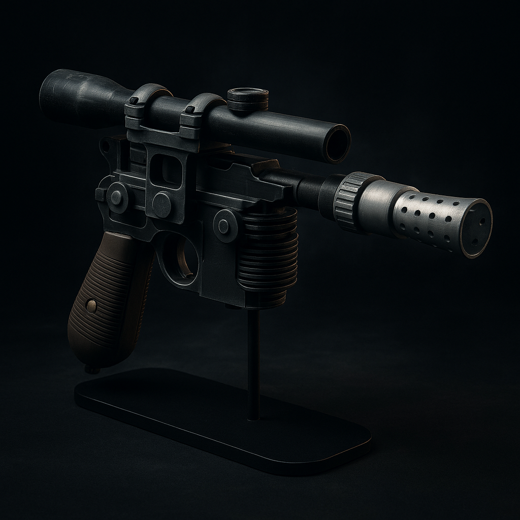 Réplica de blaster pesado DL-44 impreso en 3D y acabado a mano, lista para vitrina o cosplay. Inspirado en las batallas más épicas de una galaxia muy lejana, con empuñadura efecto madera y detalles metálicos que le dan presencia incluso apagado.